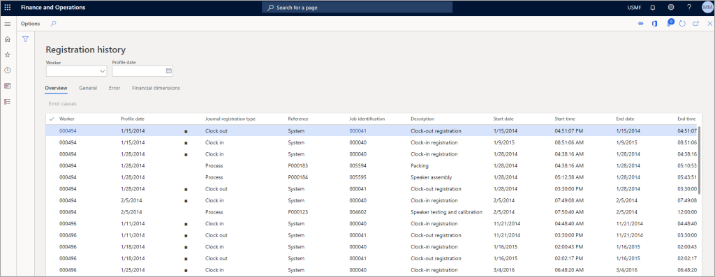Manufacturing execution is primarily intended for use by manufacturing companies. Workers can register time and item consumption on production jobs and project activities by using the Job registration form.