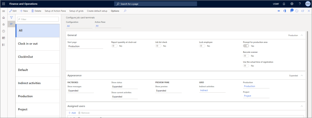 - Production jobs – Displays a list page with all the production jobs that are released to Manufacturing execution.
